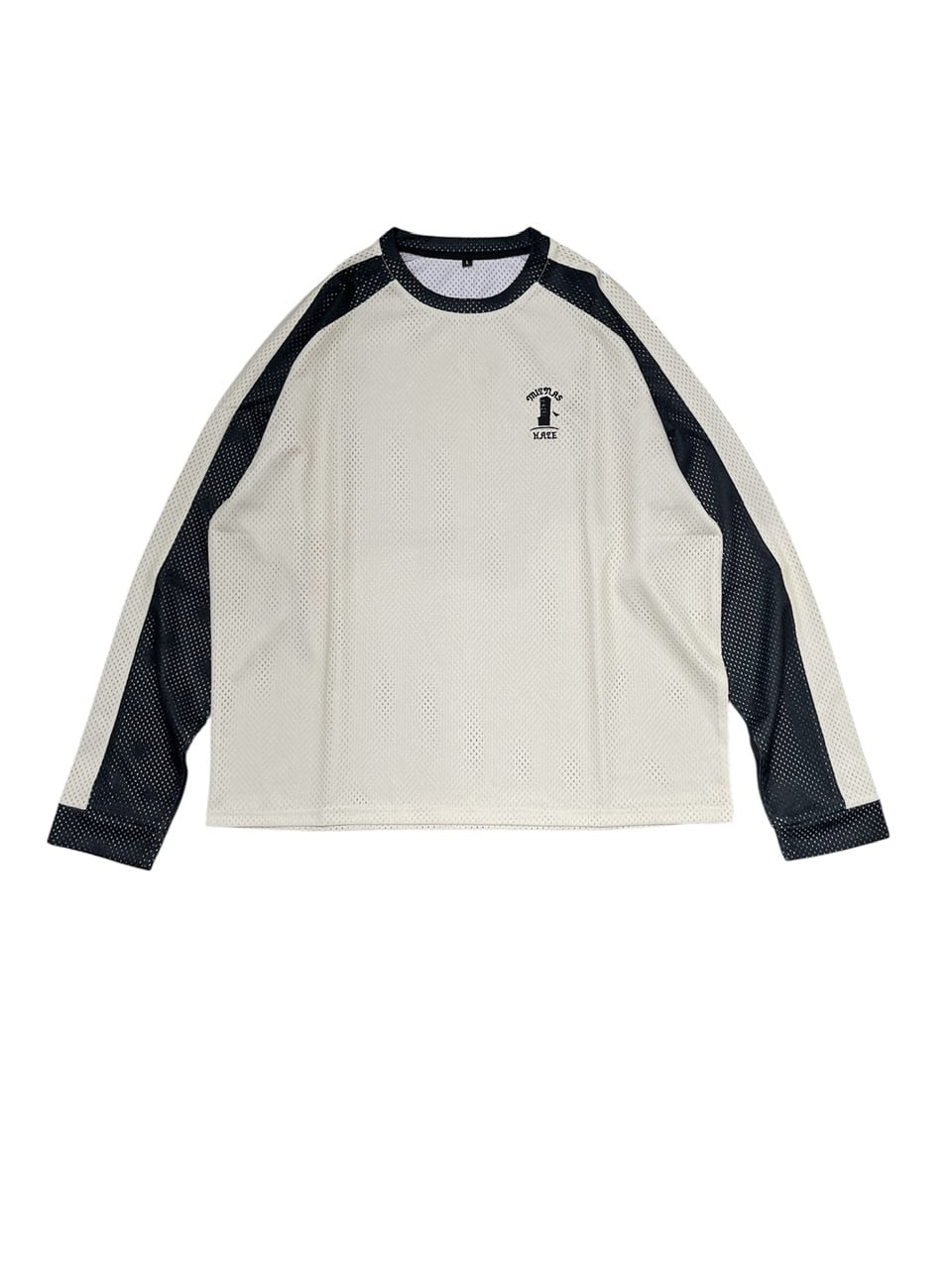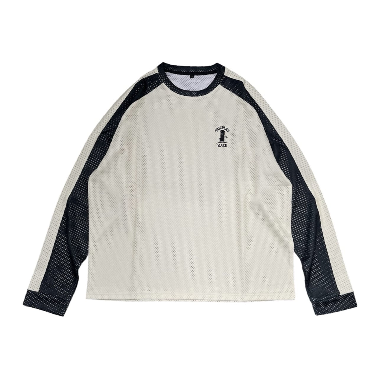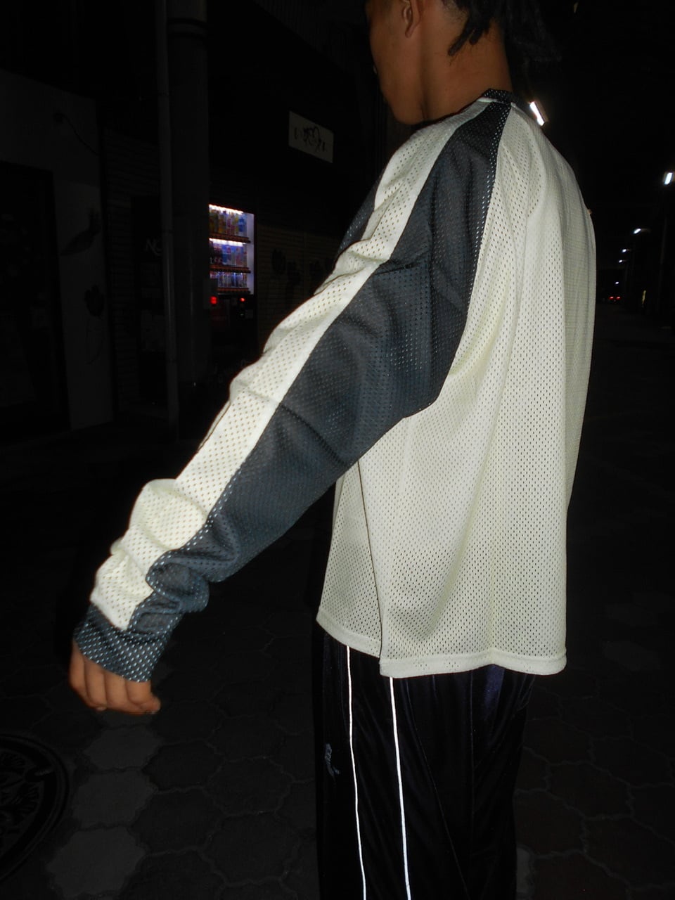 水ナスの中身の色を意識した淡いグリーンとブラックのメッシュロングスリーブジャージ