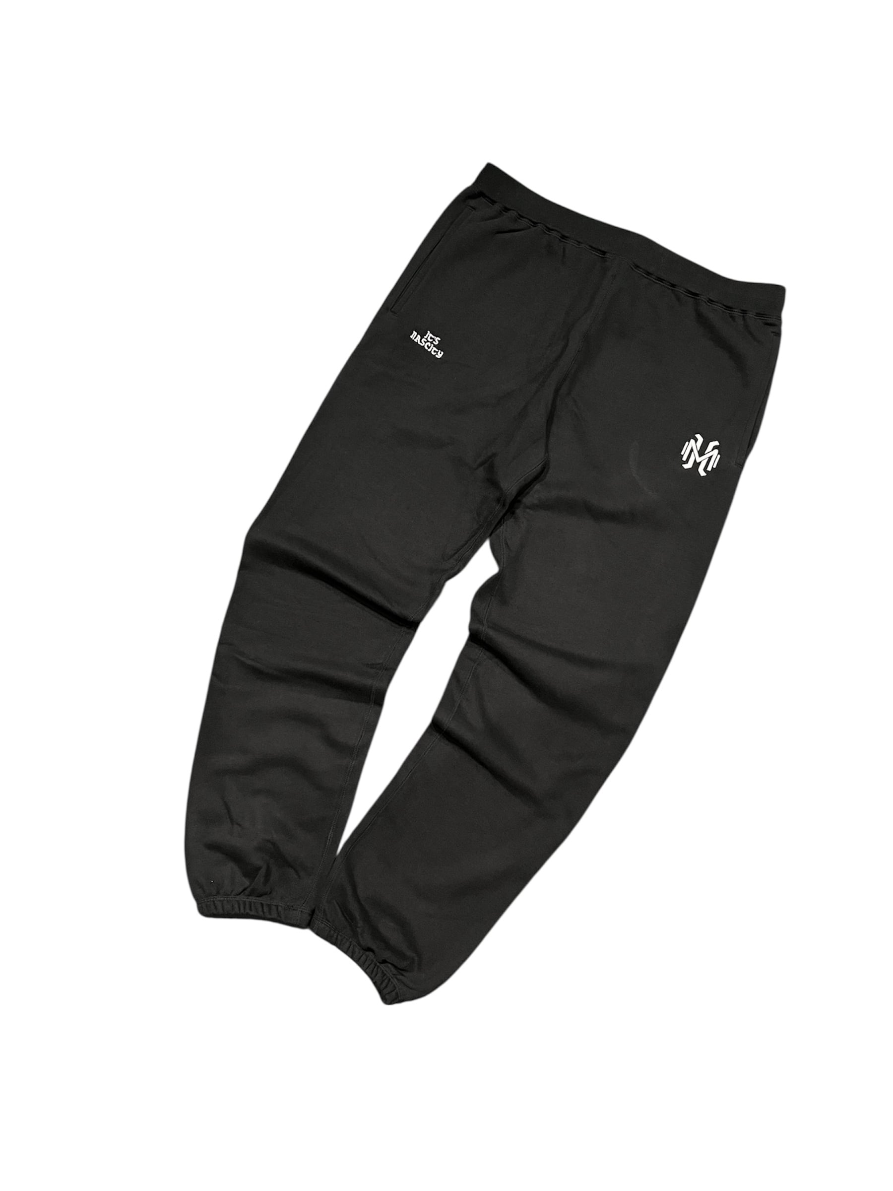 MHロゴ × IT'S NASCITYのダブル刺繍が効いたスウェットパンツ。