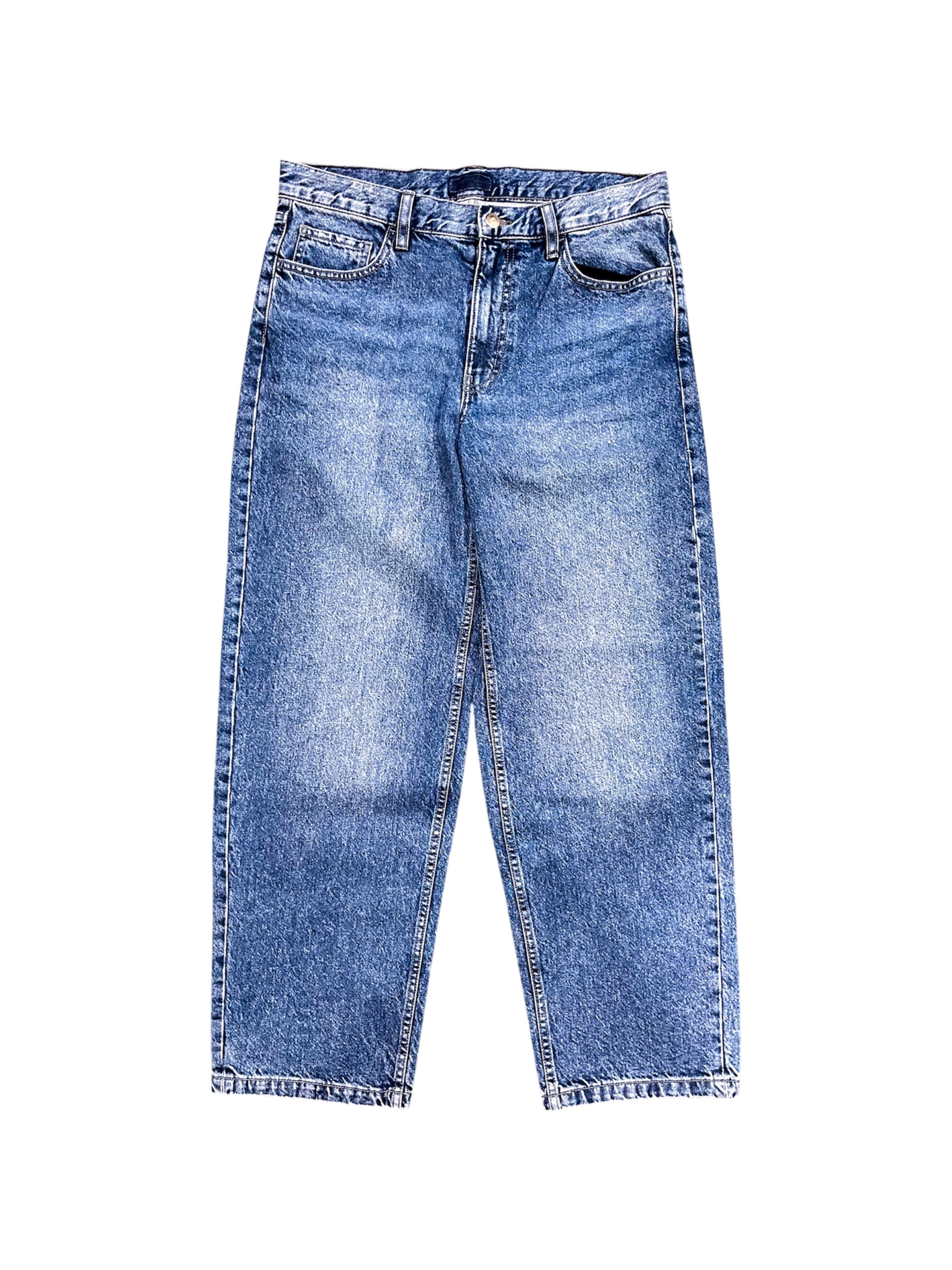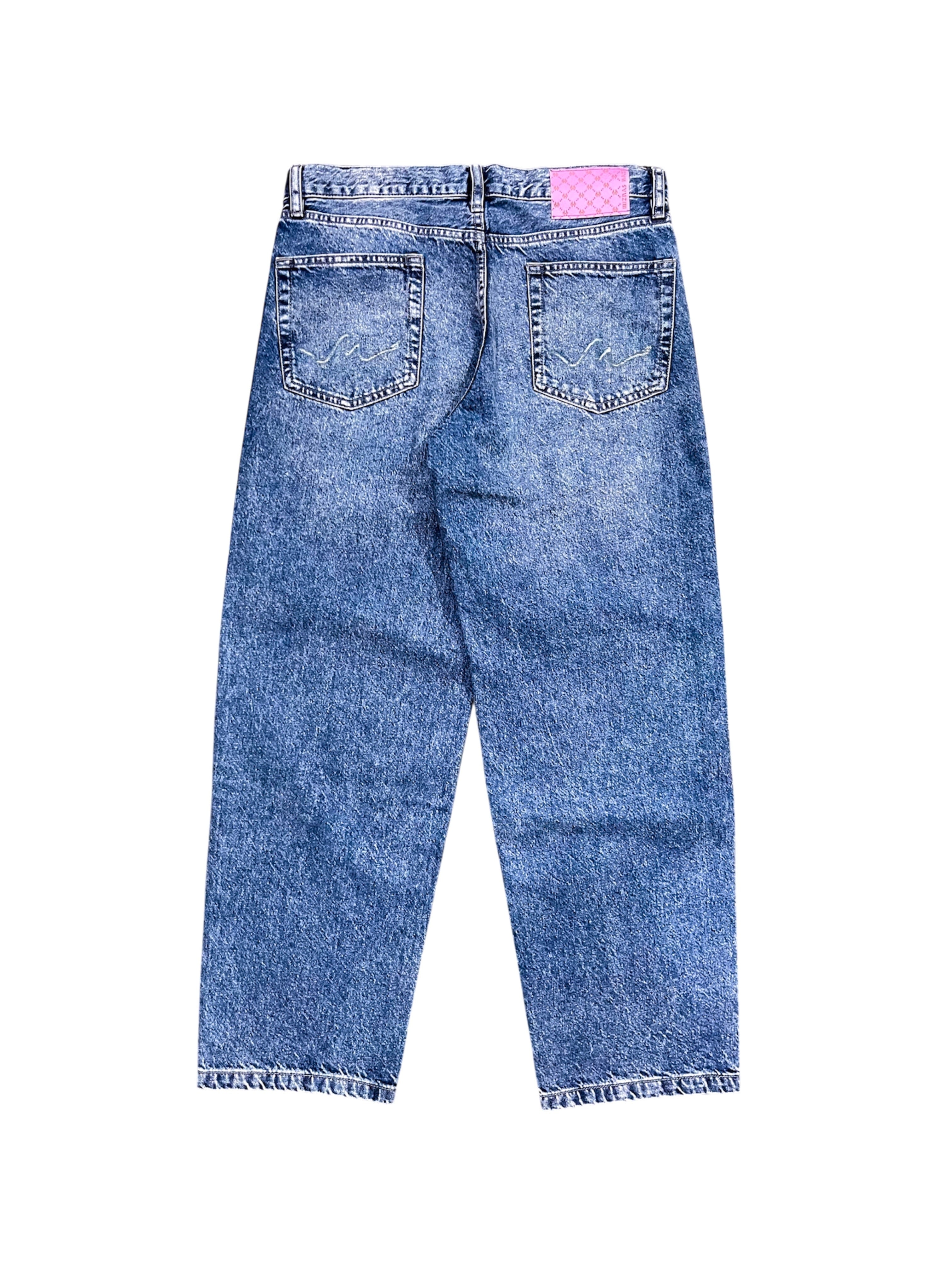 Distressed Grind Wide Denim Light Blue